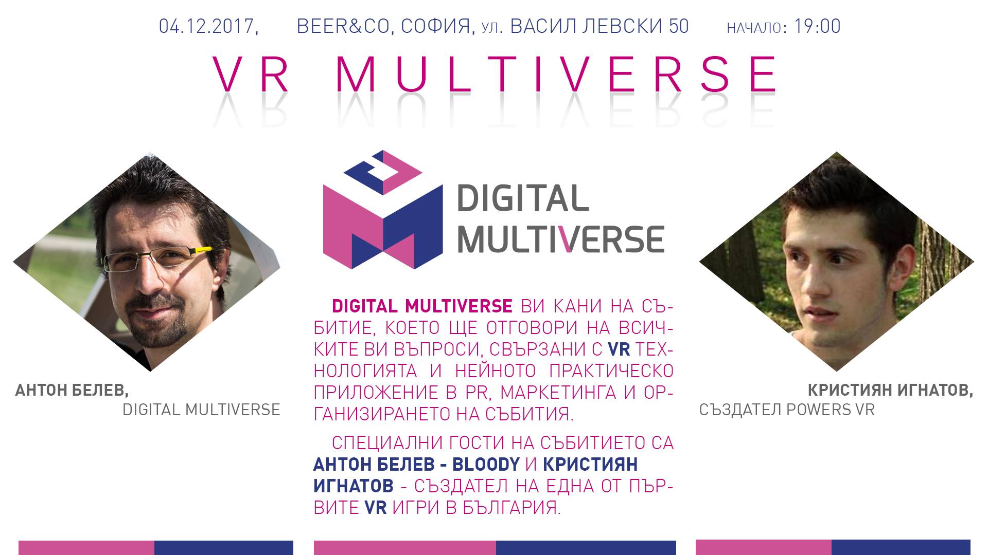 Събитието е посветено на VR технологиите и тяхното практическо приложение в маркетинга и рекламата. Неговата цел е да представи примерни за успешно използване на виртуална реалноств различни маркетинг и PR кампании, както и при организиране на събития. В рамките на VR Multiverse ще се говори за изграждане на маркетинг/ПР стратегии и тактики, базирани на технологиите за виртуални реалности, както и основните предимствата на VR за маркетинг и ПР.