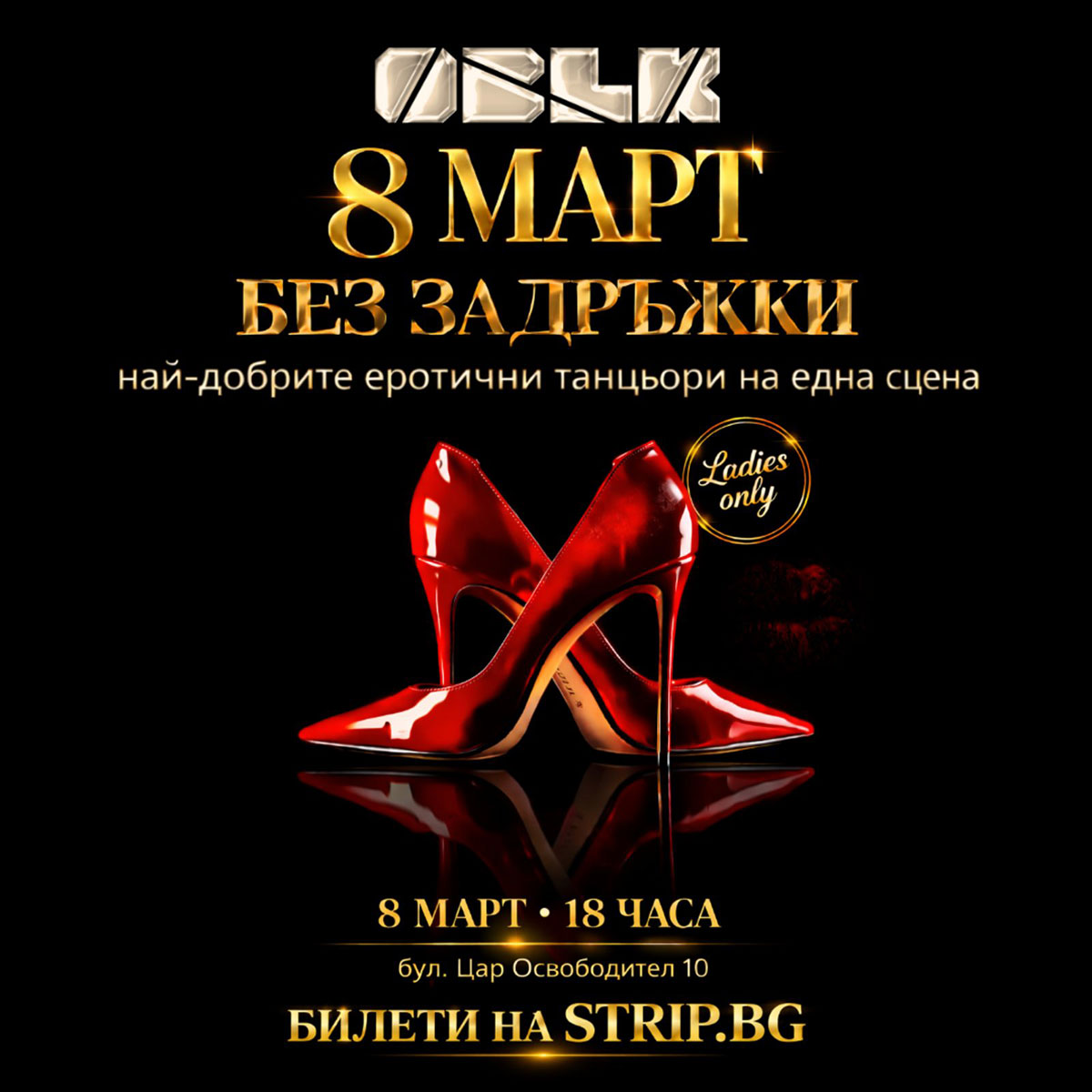 Куп еротични атракции ще забавляват дамите навръх празника им 8-ми март. В клуб OBLK, на една сцена ще се съберат най-добрите стриптийзьори в България. Десетки сексапилни артисти, с много история и опит зад гърба си, ще завземат подиума цели 3 часа, без почивка и без задръжки. Организаторите и създателите на еротичната сцена в България STRIP.BG ще съберат на едно място танцьори от групи като „Мастърс“, „Грандос“, някои от старите попълнения на „Максимус“, легендите от шоу бар No Limit и екзотични мачовци от Куба.