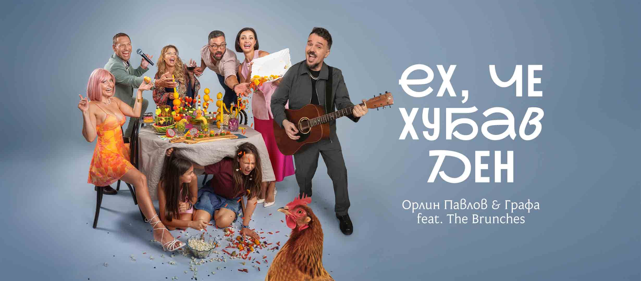 Най-вкусната комедия на годината вече има своя музикален подпис. Официалната песен от предстоящата комедия „Брънч за начинаещи“ на Яна Титова – „Ех, че хубав ден“ – излиза с аудио и видеопремиера в изпълнение на Орлин Павлов, Владимир Ампов – Графа & The Brunches.