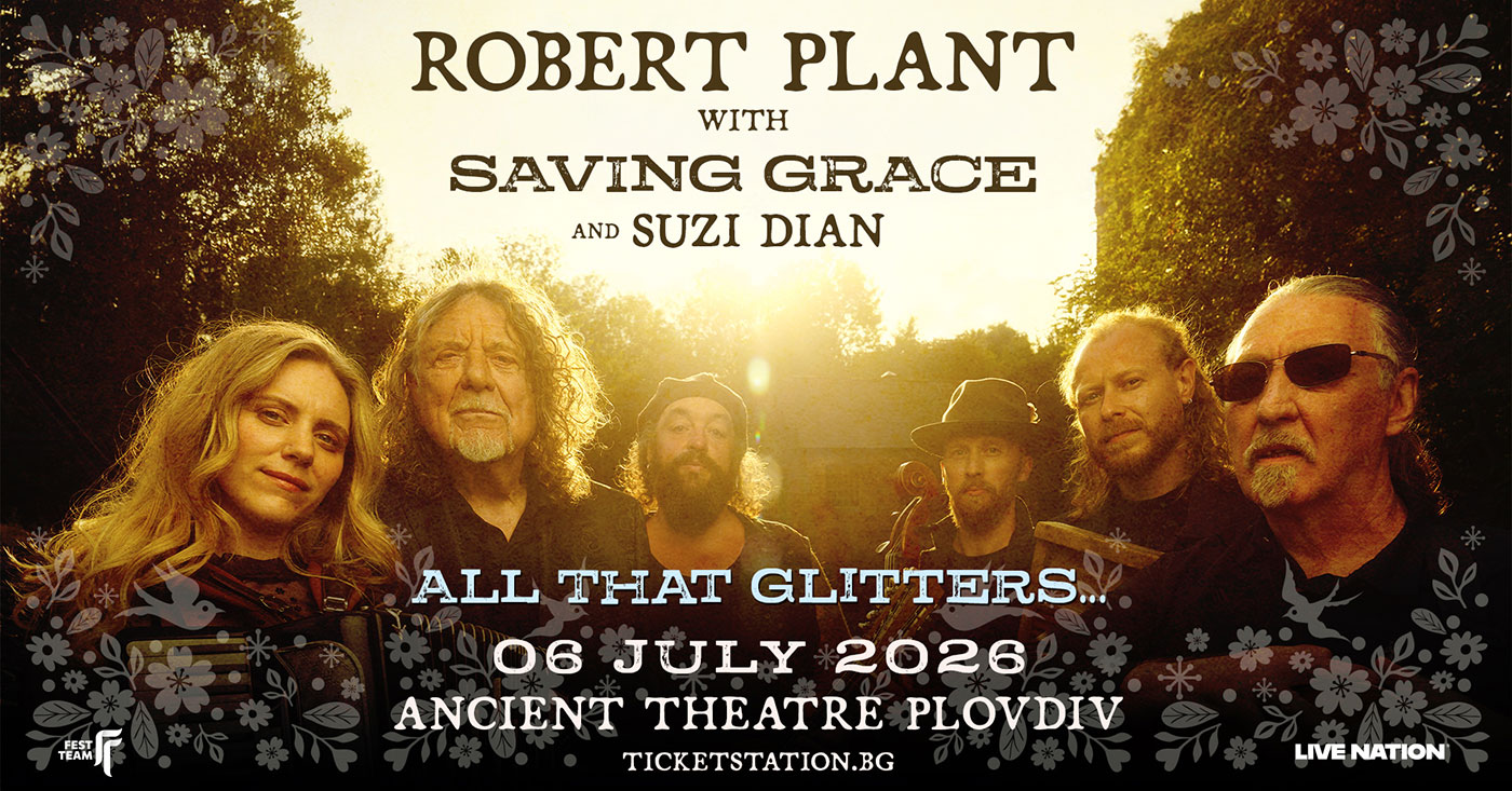 Това лято в България пристига Робърт Плант със Saving Grace и “All That Glitters…” – най-интимната и вдъхновена форма на музиката, която легендарният музикант е създавал в последните десетилетия. На 6 юли 2026 г. българската публика ще стане част от това вълшебство на Античния театър в най-стария жив град в Европа – Пловдив. Проектът Saving Grace е великолепен не заради миналото, което Плант естествено носи със себе си, а заради музиката, която прави сега. Билетите, на цени, които стартират от 100 евро, влизат в продажба на 5 февруари, четвъртък, в 10:00 в мрежата на Ticket Station.