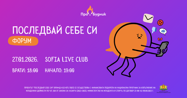Форумът “Последвай себе си!” на 27 януари в София, събира лични истории и гледни точки за това как да останеш автентичен в свят, в който социалните мрежи диктуват стандарти, на които никой не може да отговори. Форумът е с вход свободен и e кулминация на едноименната инициатива на Сдружение “Пробудник”, която цели да се насърчи личната увереност, критичното мислене и осъзнатото присъствие онлайн сред младите хора. На сцената на Sofia Live Club ще чуем идеи и лични истории от Мария Силвестър, Даниел Петканов, Адрияна Михайлова, Оля Малинова и Симеон Василев, които ще дадат своята интерпретация на тази важна тема и ще споделят за своя начин да бъдат запазят себе си – без превод и захарна глазура. Водещ на събитието ще бъде Васил Бовянски от ХаХаХа Импро театър.