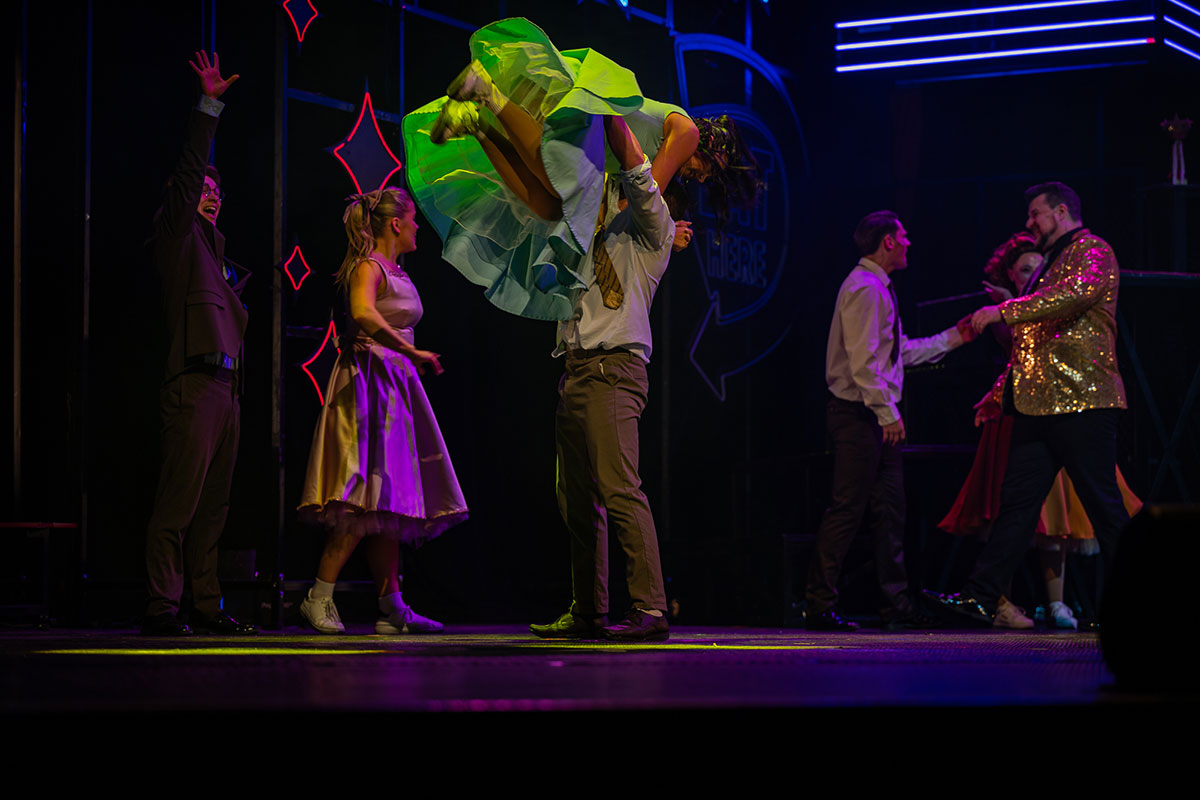 Сценичната версия предложи на публиката не само познатите хитове, но и сцени и песни, които не присъстват във филмовата адаптация. Декорите, изработени специално за спектакъла пък пренесоха аудиторията директно в Райдъл Хай – с внимание към детайла, стил и усещане за автентичност. Особено впечатляващ момент беше изпълнението на „Greased Lightnin’“ – на сцената влезе истинска кола, цяла, не като декор от отделни части. Това зрелищно решение предизвика възгласи и аплодисменти още при появата ѝ и затвърди усещането за мащабна международна продукция.