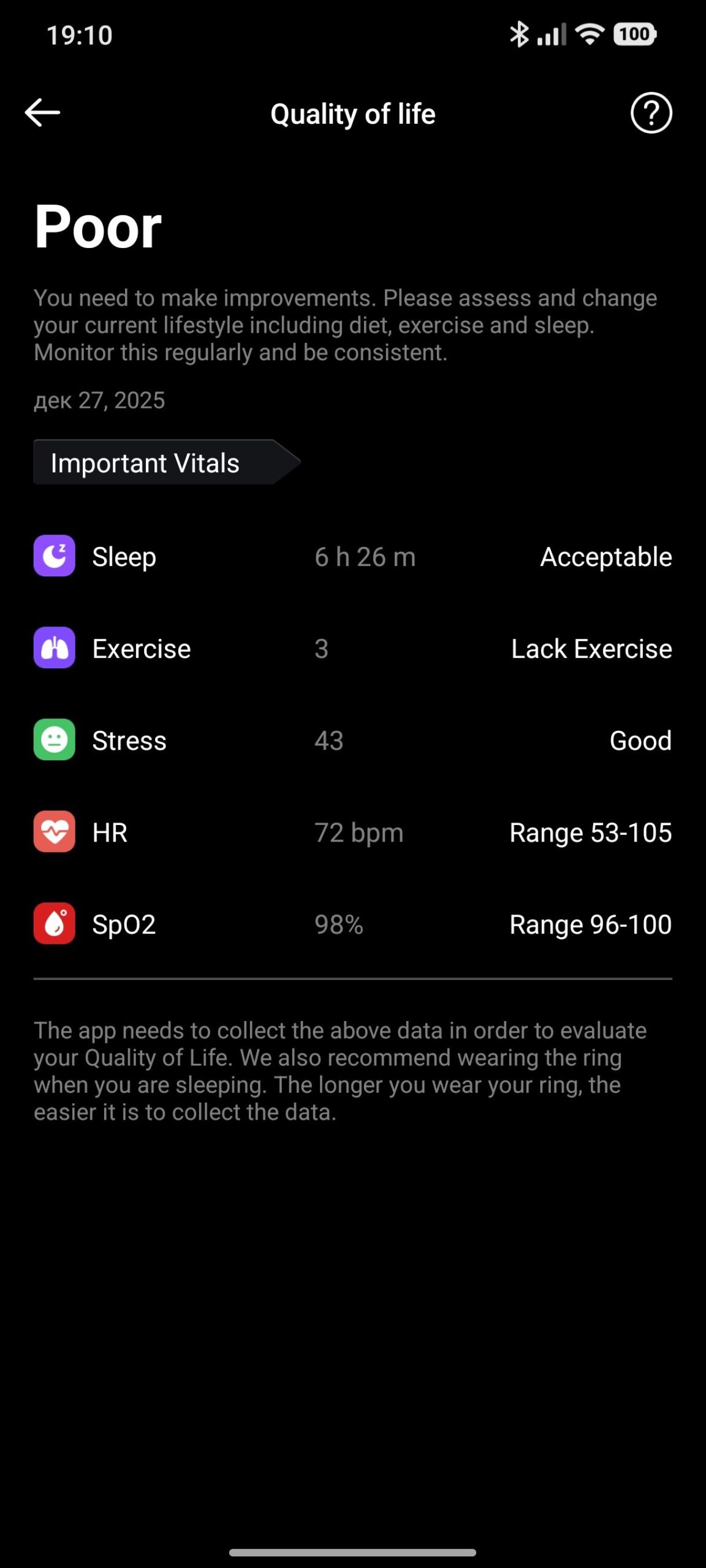 След като известно време събира данни, пръстенът започва да използва усъвършенстван алгоритъм за изчисляване на VO₂ Max (максимален дихателен капацитет) и фитнес възраст. Това са анализи, базирани на дългосрочен мониторинг, което предполага сериозен подход към обработката на биометричните данни. Алгоритъмът за VO₂ Max и фитнес възраст не е медицински инструмент, но предоставя добра ориентация за общото физическо състояние.