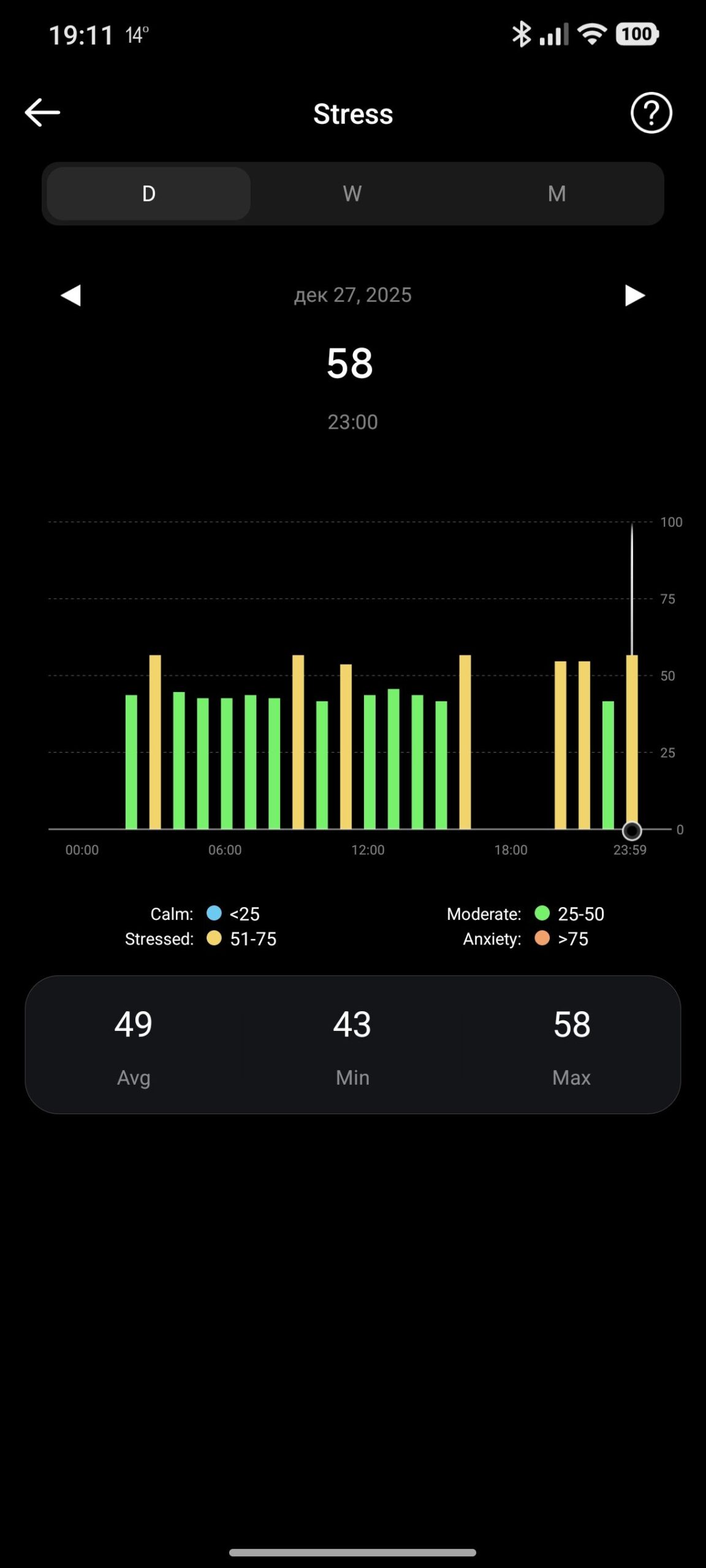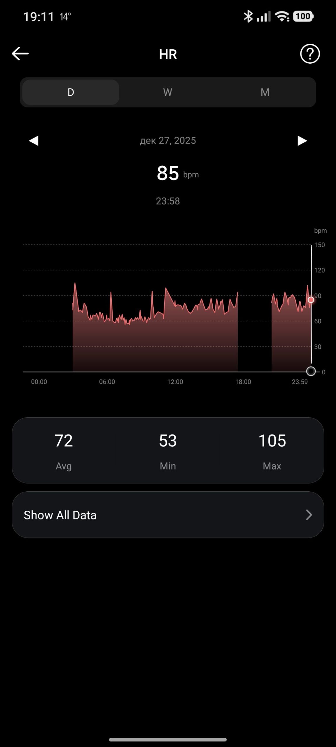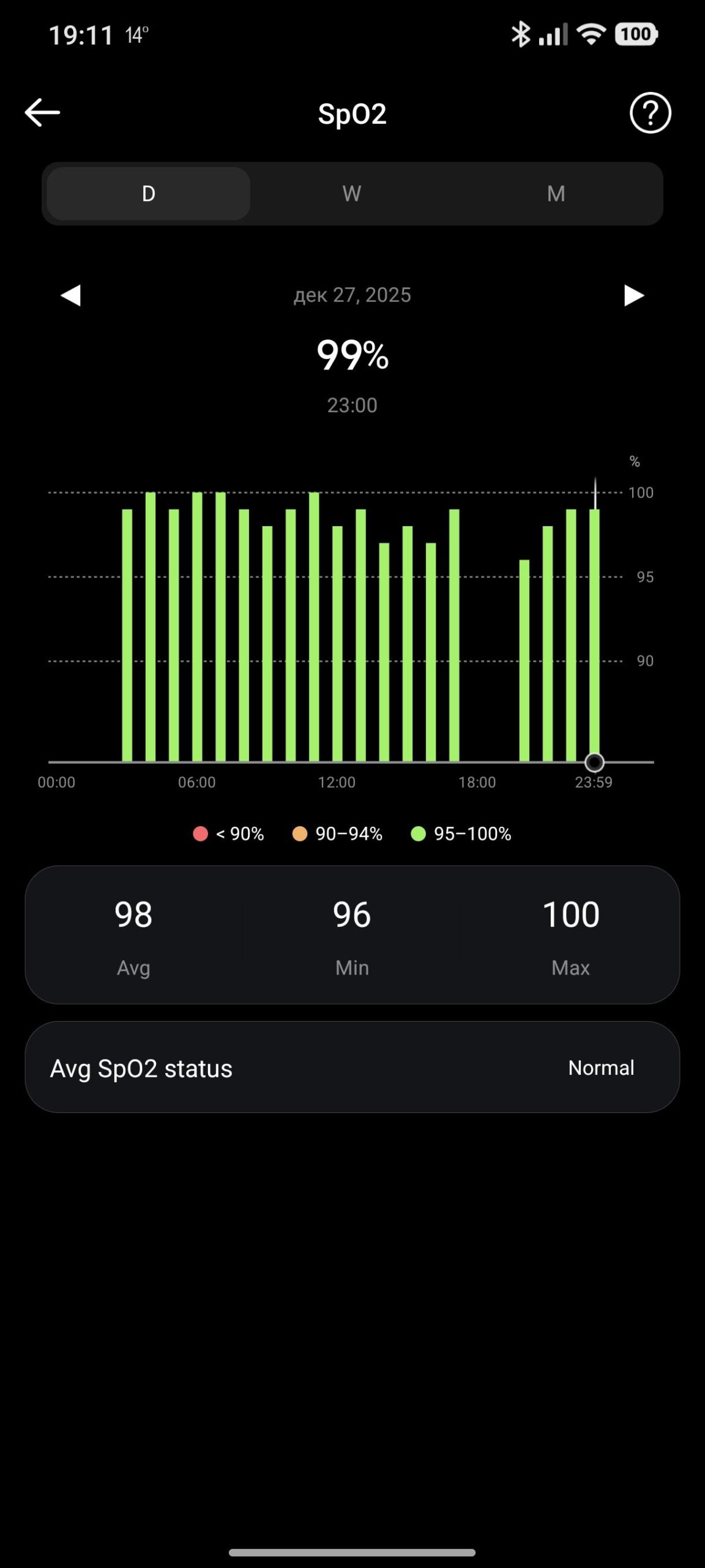 Вградените температурни сензори следят промените в телесната температура с много добра чувствителност. Приложението визуализира тренда в графики, което помага за разпознаване на евентуален стрес, настинка или просто реакция на силно натоварване.